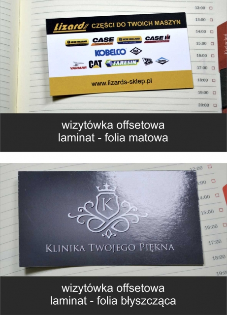 • druk offsetowy (od 350g) i laminowanie (oklejanie kartoników jedno lub dwustronne bezbarwną folią)