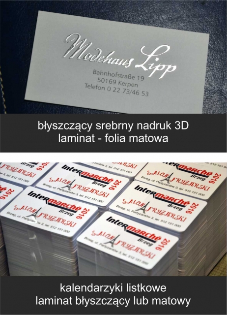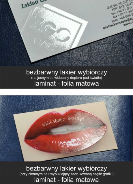• lakier wybiórczy (na laminowanej matowo powierzchni dowolna część grafiki jest nabłyszczana lakierem)