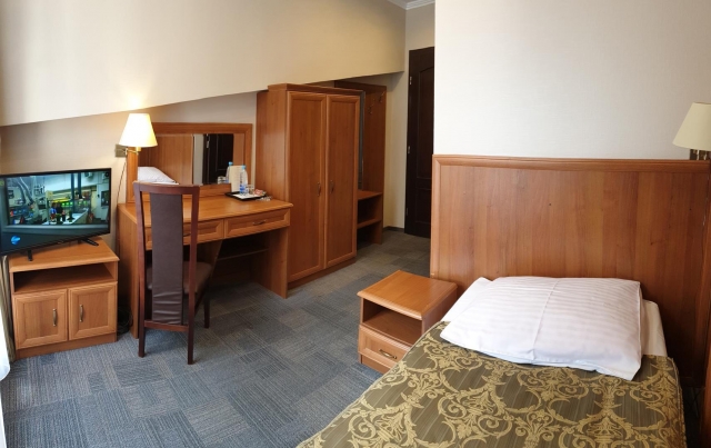 Nasze pokoje jednoosobowe posiadają prywatną łazienkę, w której czekają kosmetyki oraz ręczniki do użytku gościa. W pokoju do dyspozycji oddajemy telewizor z dostępem do telewizji kablowej oraz bezpłatny dostęp do sieci WIFI.